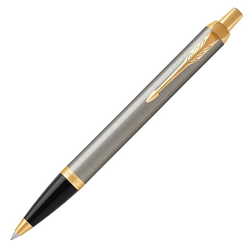 Шариковая ручка IM Core с нажимным механизмом. Корпус из стали, покрыт прозрачным сатиновым лаком серебристого цвета, отшлифован, превосходно сочетается с позолоченными элементами. Зона захвата выполнена из глянцевого черного пластика. Выгравированный логотип PARKER на декоративном позолоченном кольце.