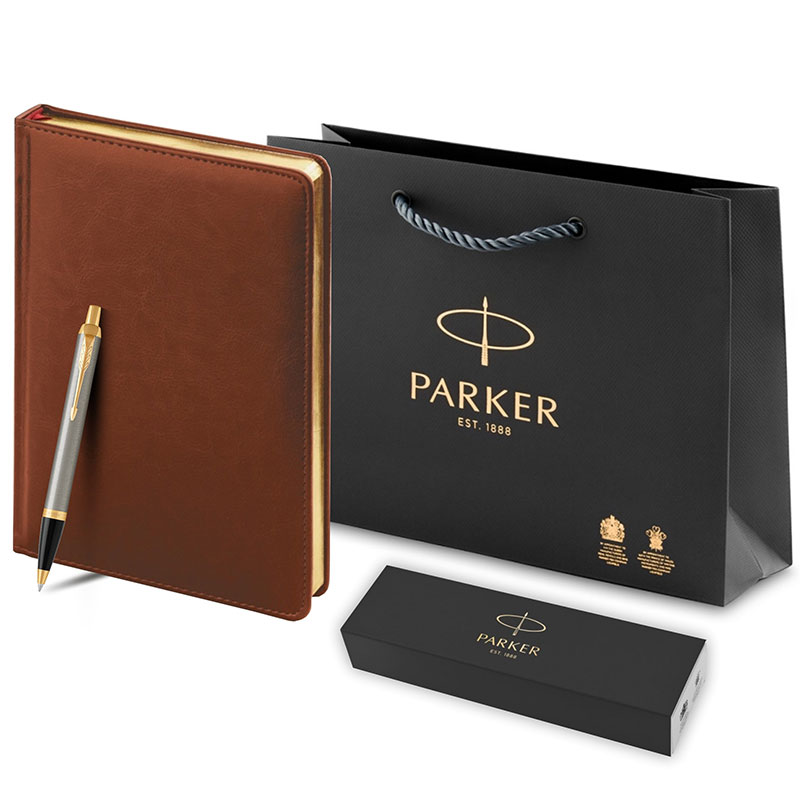 Набор Parker IM Brushed Metal GT из шариковой ручки и ежедневника коричневого цвета в Уфе