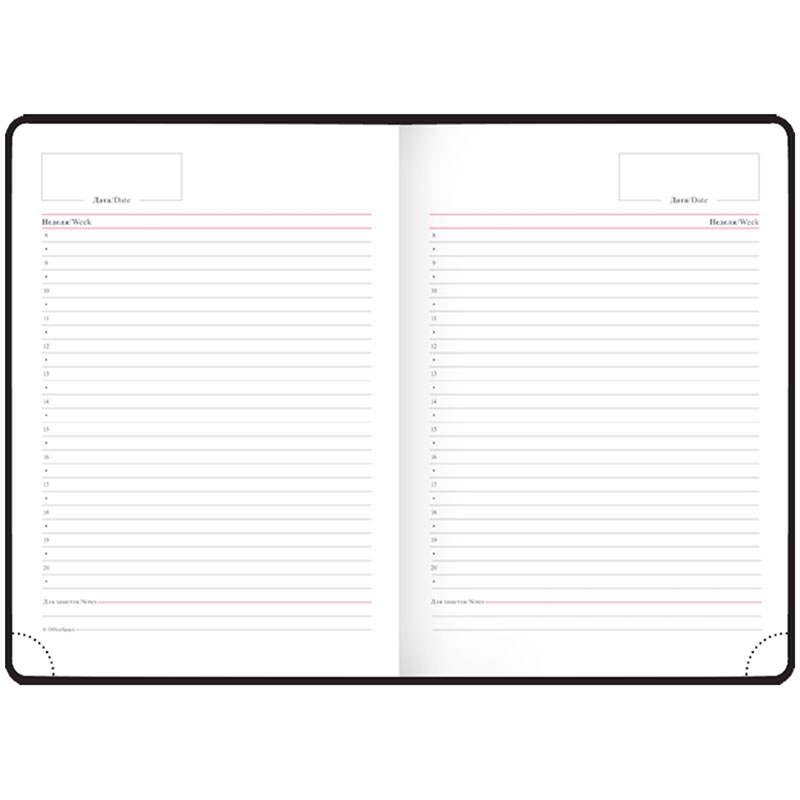 удобство при использовании ежедневника. Внутри на форзацах содержатся
